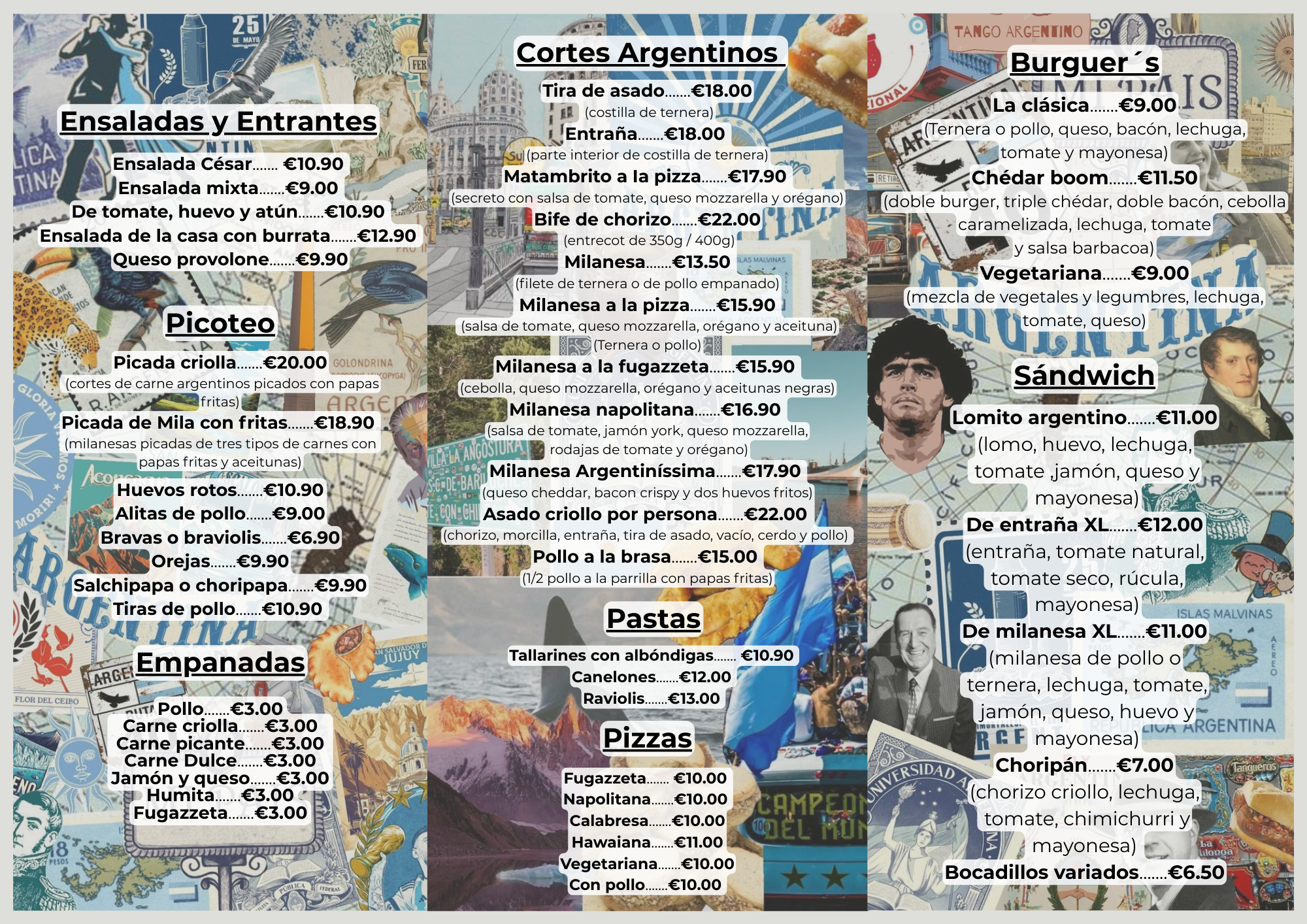 Te invitamos a saborear nuestra auténtica cocina argentina. Contamos con una amplia carta con platillos de variedad que te transportarán directamente a la tierra de los campeones del mundo. Nuestro equipo está comprometido en ofrecer una atención y productos de alta calidad que te harán sentir como en casa. Desde un delicioso plato de milanesa napotilana, hasta nuestras empanaditas con salsa criolla de especialidad, sin olvidarnos de nuestro asado argentino y un buen adicional de papas fritas. Entre otros platos de deleite.